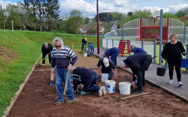 A cette occasion, après avoir retiré les mauvaises herbes présentes, les terrains ont pu être aplanis, compactés et préparés pour les beaux jours.