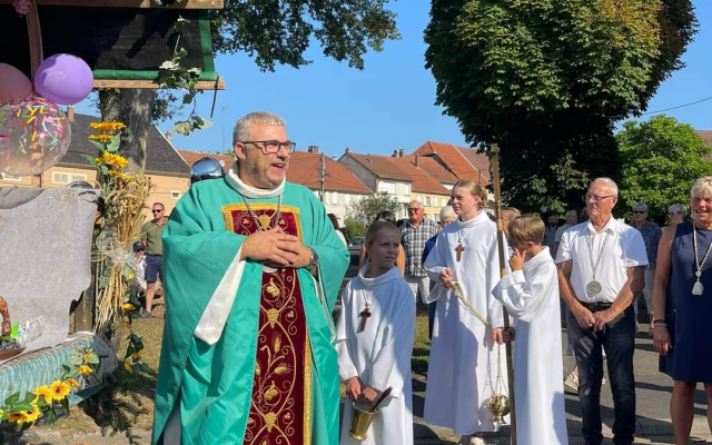 Dimanche matin, à l’issue d’une messe célébrée par l’abbé Nirrengarten, le bébé vigneron, cette année la petite Jeanne, a pu s’installer dans la charrette après son baptême pour se rendre jusqu’à la salle des fêtes.
